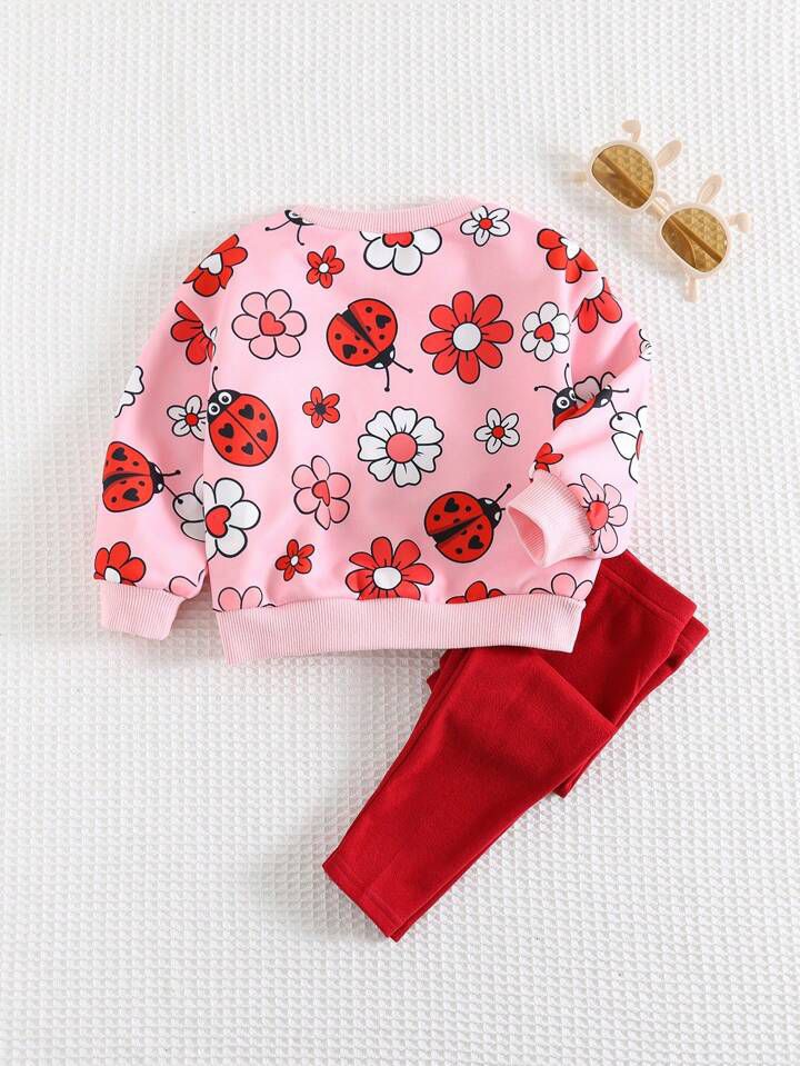 Make your little one’s day extra cheerful with the Glozin Girls Ladybug & Floral Print Sweatshirt and Legging Set. This playful pink-and-red outfit features adorable ladybugs, bright flowers, and ultra-soft fabric—perfect for girls aged 1 to 14 years. Whether for school, outings, or cozy home wear, this set brings comfort and cuteness together. 🐞💖🌸